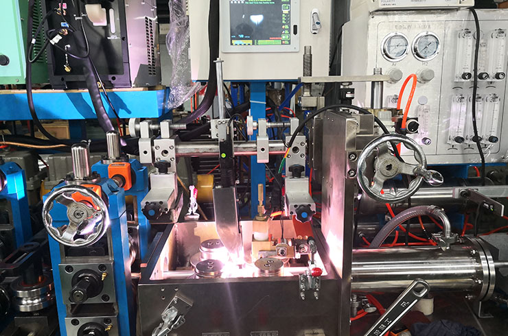 為了提高生產(chǎn)線效率,又可以獲得良好的焊縫質(zhì)量,我們公司研發(fā)的電弧焊接的穩(wěn)弧器,針對(duì)上述的問題,在電弧中間外加可以調(diào)節(jié)大小的縱向電磁場所,通過電磁力把電弧穩(wěn)定在中間或向前推,有了電磁穩(wěn)定,電弧就不會(huì)向后或左右擺動(dòng),咬邊和“駝峰”的問題就不會(huì)出現(xiàn)。所以提高了生產(chǎn)效率又保證了質(zhì)量,如圖2所示。提高速度20-30%在實(shí)際生產(chǎn)中使用得到了驗(yàn)證。為了適應(yīng)不同的焊接電流和生產(chǎn)速度,可以調(diào)節(jié)電磁力的大小,適應(yīng)不同的焊接電流和速度。